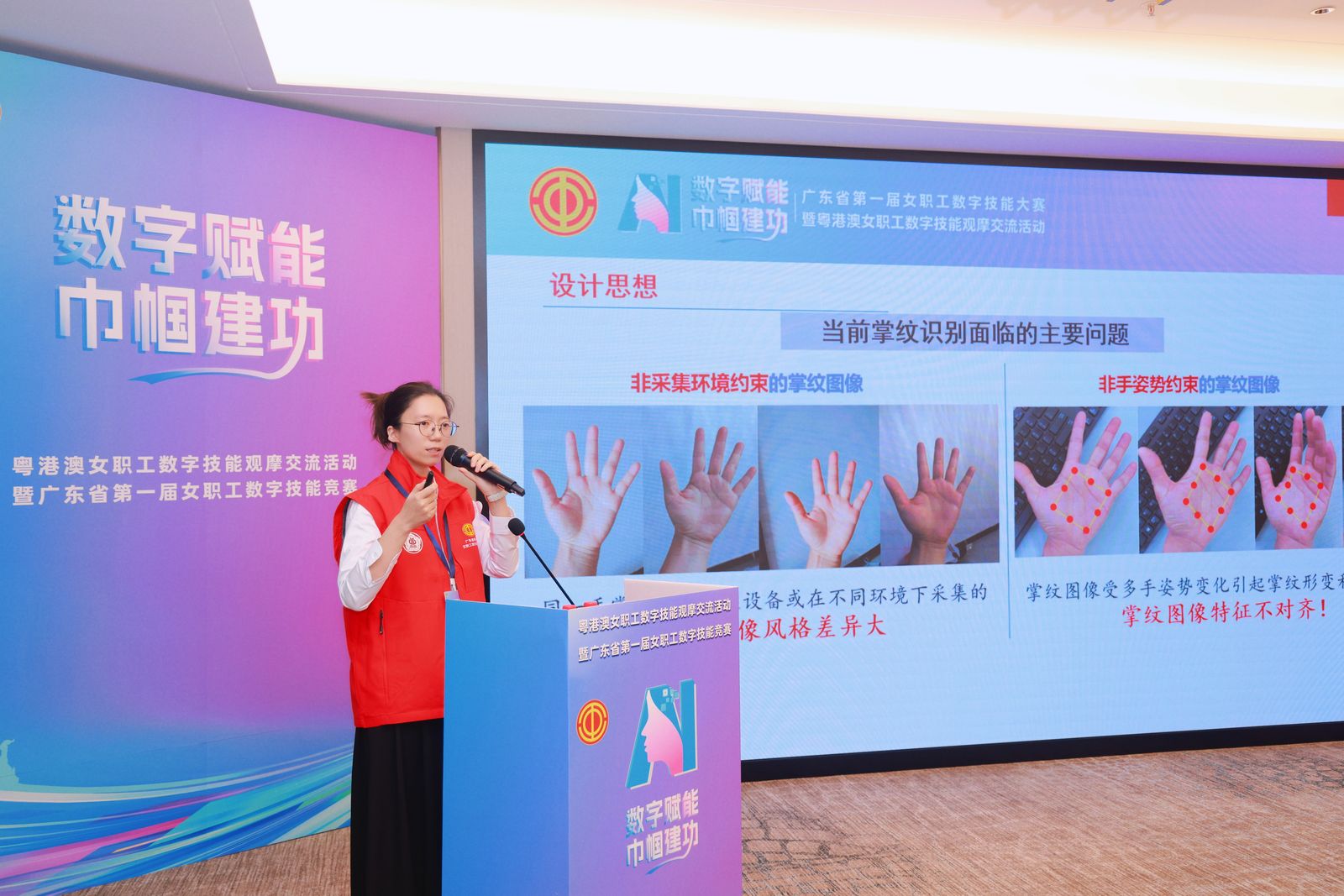 女职工AI算法师技能竞赛为团体赛,专门引入了生物识别领域的新兴技术——手掌识别。这项技术在金融支付、地铁过闸、智能门锁等需要高精度身份验证的领域具有广泛应用前景。竞赛核心考察选手的智能算法设计、软件编程、综合实现能力。来自广汽研究院的闫桂霞和两位同事组成广汽xlab队,她们表示:“我们研发创新的新算法提升了掌纹识别精准度。”